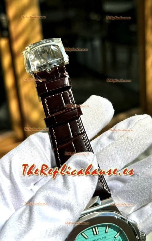 Genuina Correa de Piel con Doble Cierre Plegable de Acero Inoxidable con Marcas y Grabados Patek Philippe
