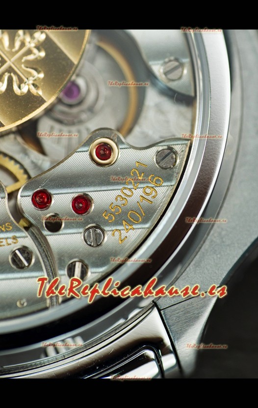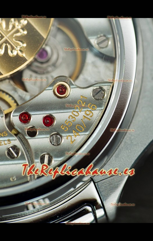 Caja Acero Inoxidable 904L con Marcas y Grabados Patek Philippe en Trasera de la Caja.