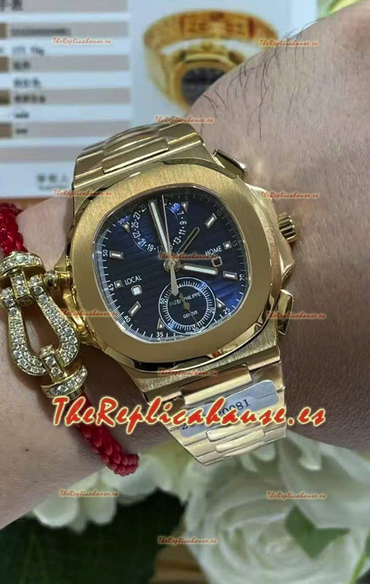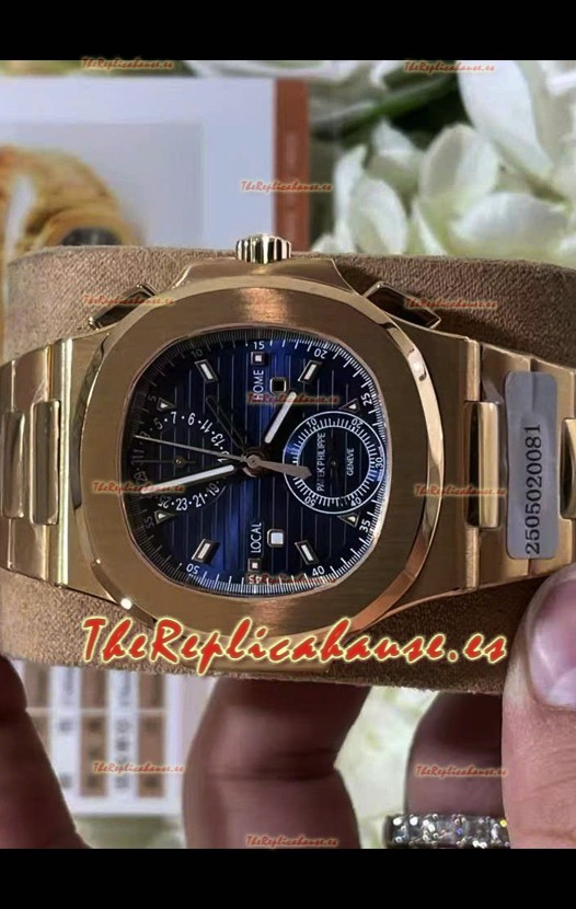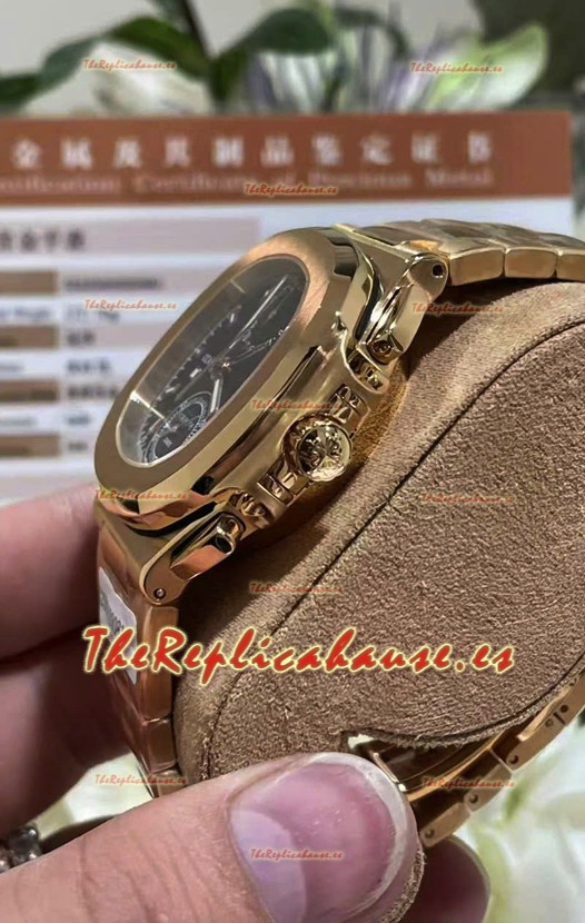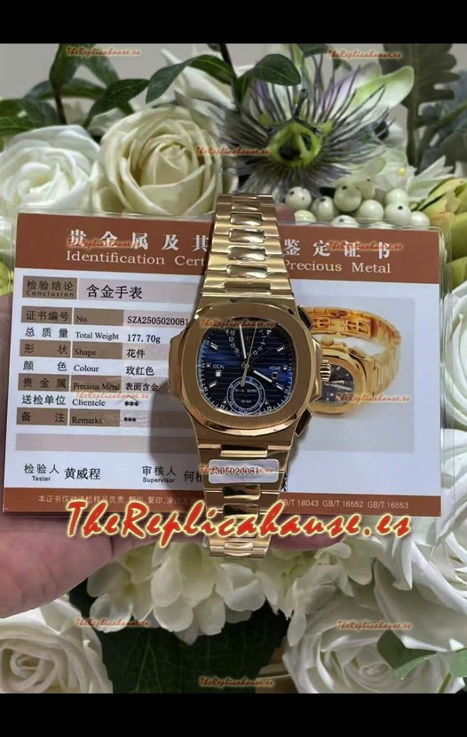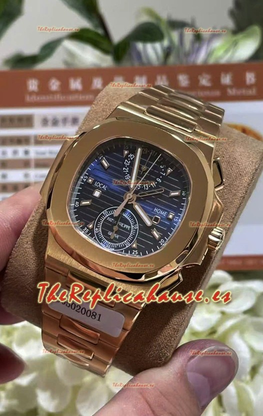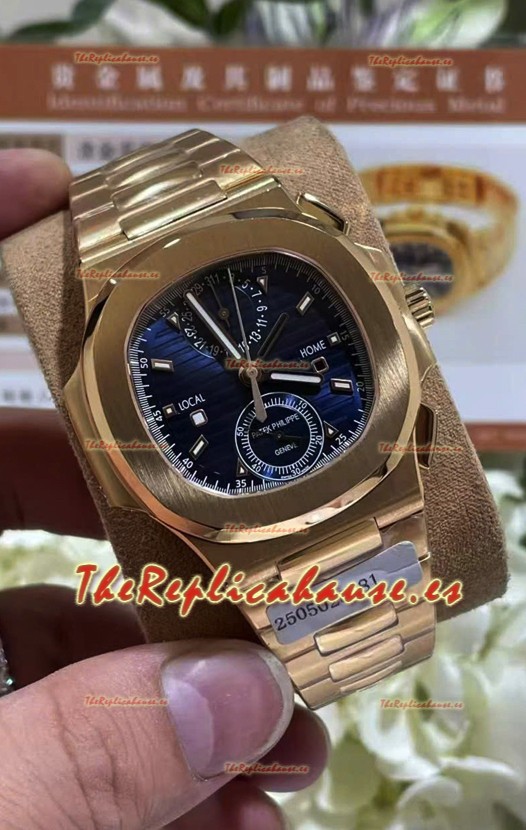 Patek Philippe Nautilus 5990R Caja Acero 904L chapada en Oro Rosado Dial Azul - Réplica Espejo 1:1