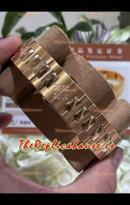 Correa Acero Inoxidable 904L chapada en Oro Rosado 18K unida con Tornillos y Doble Cierre Plegable de Acero Inoxidable con Marcas/Grabados Patek Philippe