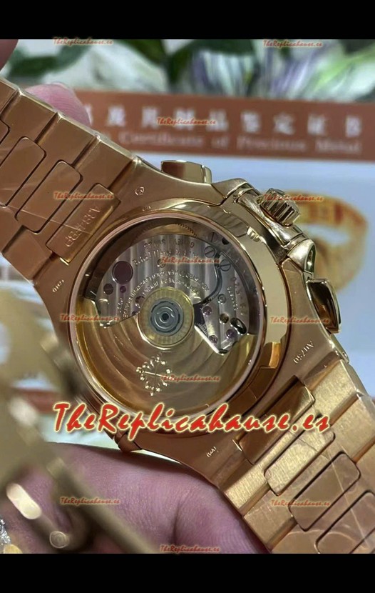 Caja Acero Inoxidable 904L chapada en Oro Rosado 18K con Marcas y Grabados Patek Philippe en Trasera de la Caja