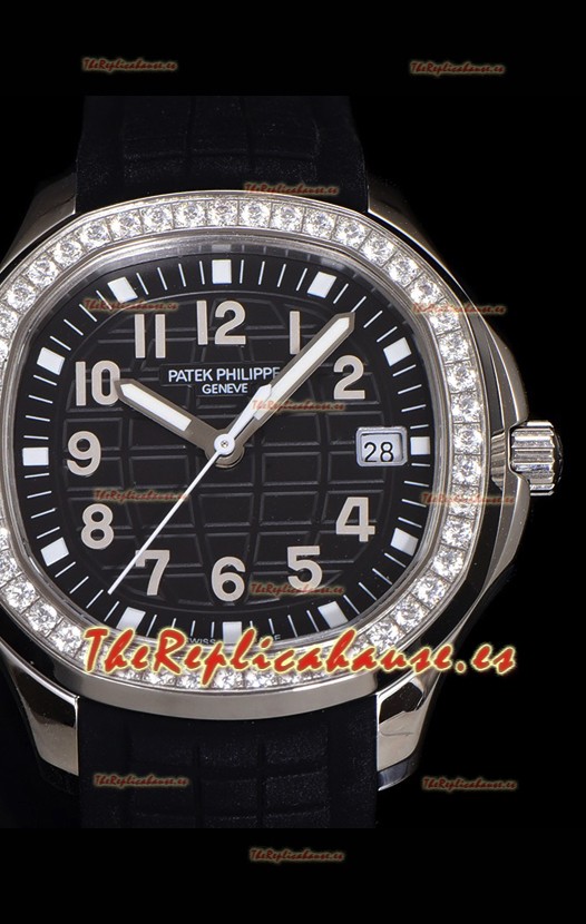 Dial Texturizado y Colorizado Negro con Ventana de Fecha a las 3 en Punto. Bisel de Diamantes