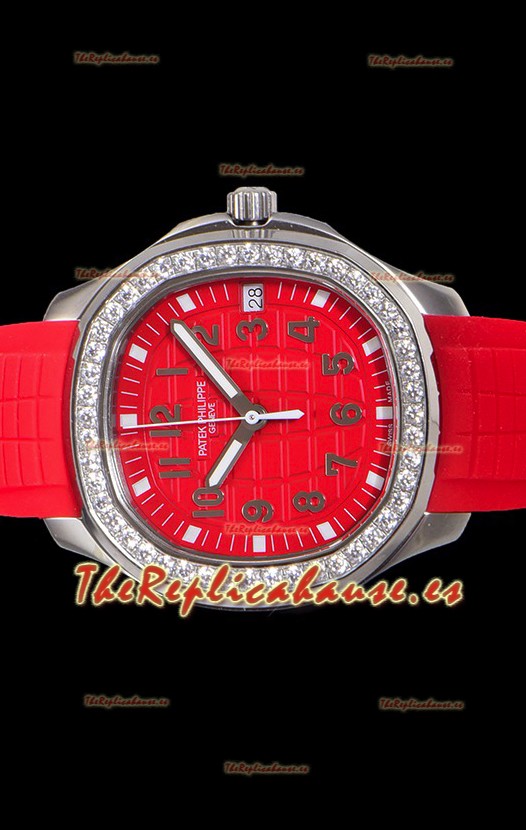 Dial Texturizado y Colorizado Rojo con Ventana de Fecha a las 3 en Punto. Bisel de Diamantes