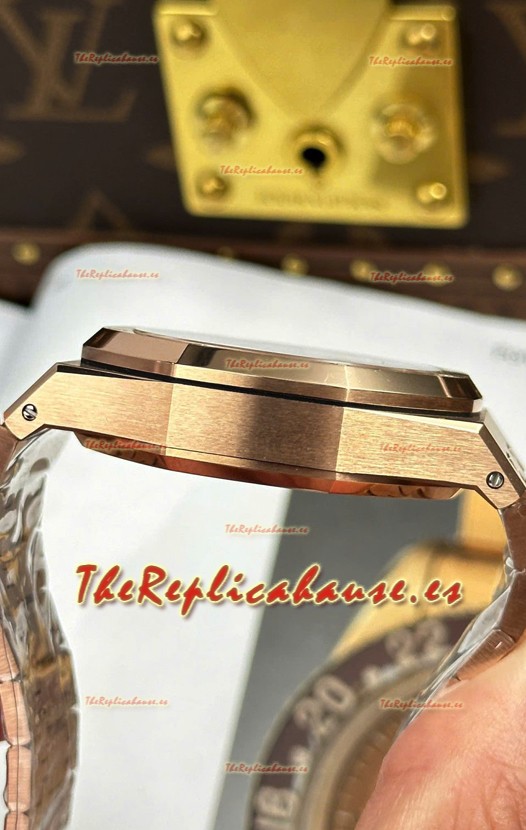 Caja Acero 904L chapada en Oro Rosado completada con Marcas y Grabados AP.