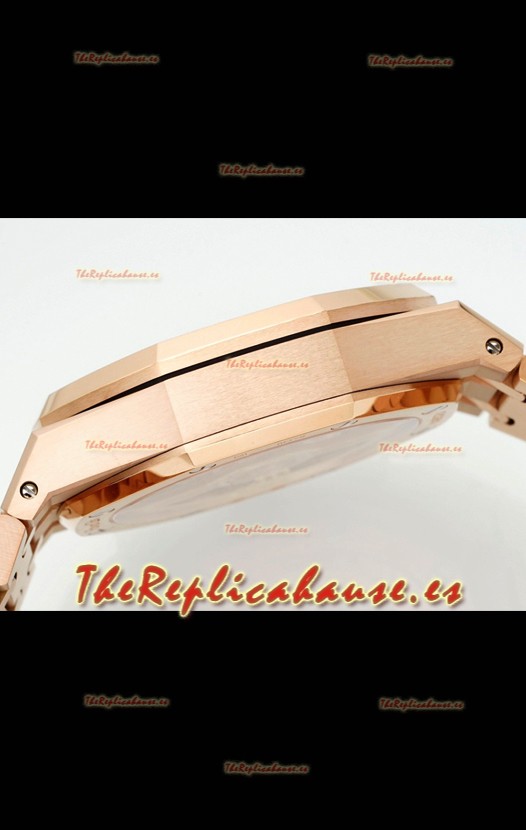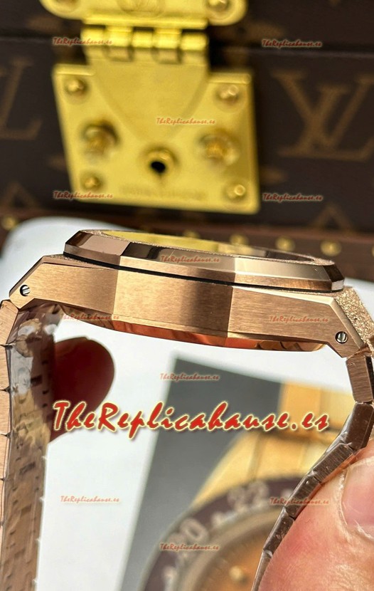 Caja Acero 904L chapada en Oro Rosado Esmerilado completada con Marcas y Grabados AP.