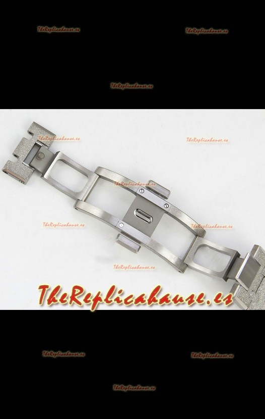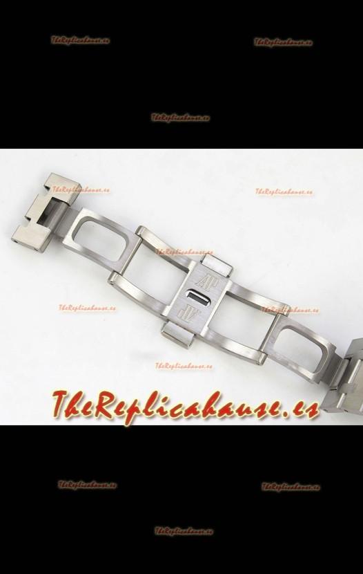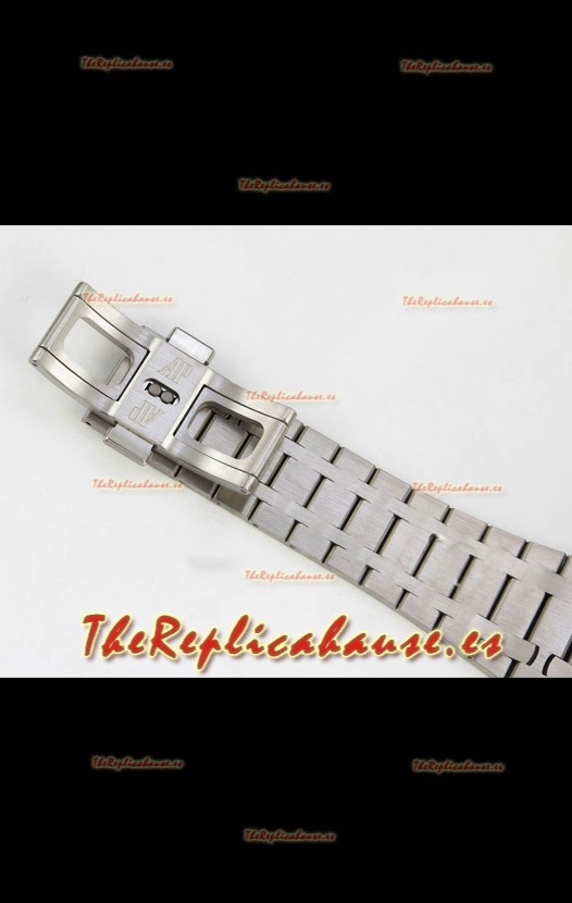 Correa Acero Inoxidable 904L chapada en Oro Blanco Esmerilado completada con Marcas y Grabados AP como los originales y Cierre Plegable AP