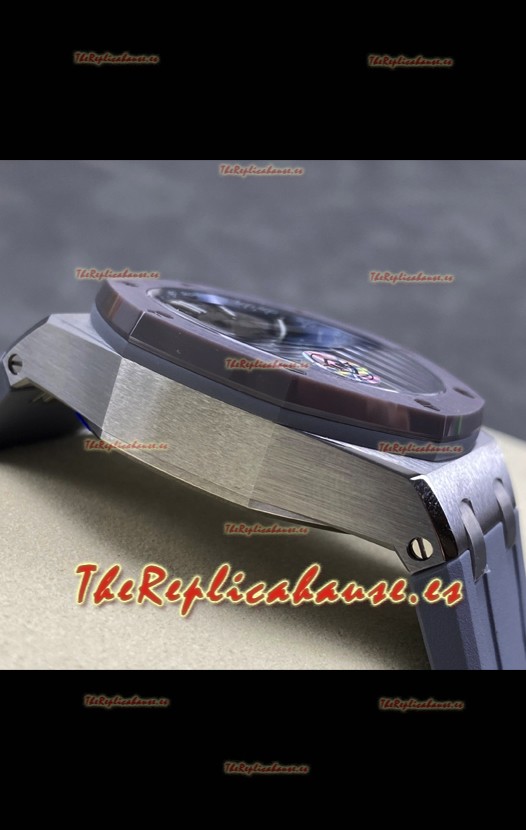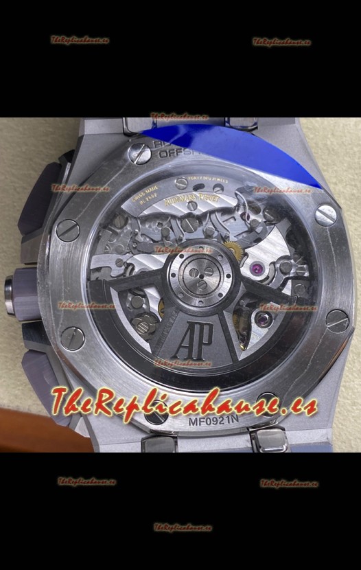 Disposición de la Maquinaria Idéntica al Movimiento Audemars Piguet Calibre 4401 utilizado en los Auténticos relojes Audemars Piguet Offshore, fabricado con la arquitectura del Genuino movimiento Suizo 7753, con cronómetro funcional como el original
