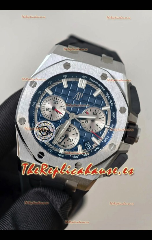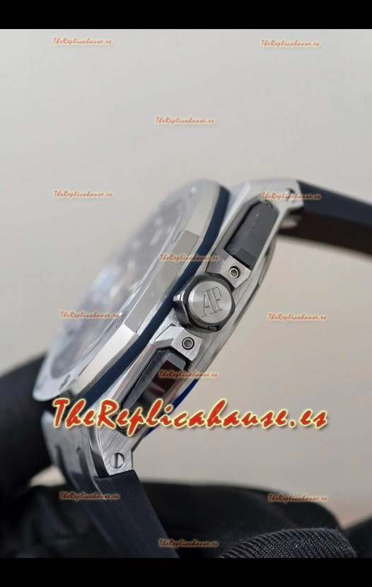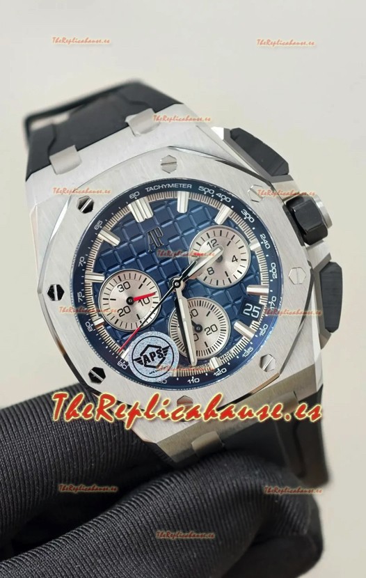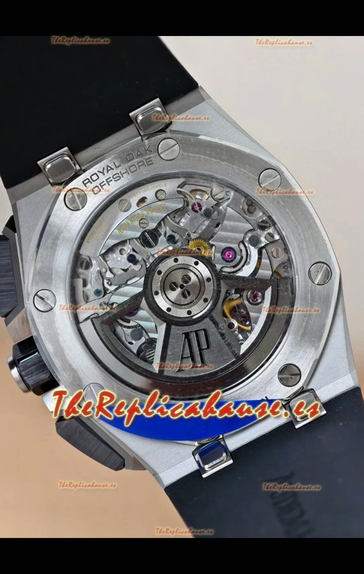 Disposición de la Maquinaria idéntica a la del Movimiento Audemars Piguet 3126 Calibre utilizado en los Relojes Auténticos Audemars Piguet Offshore, fabricado con la arquitectura del Genuino movimiento Suizo 7753, con cronómetro funcional como el original