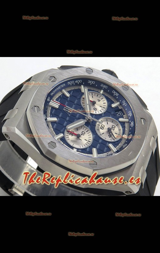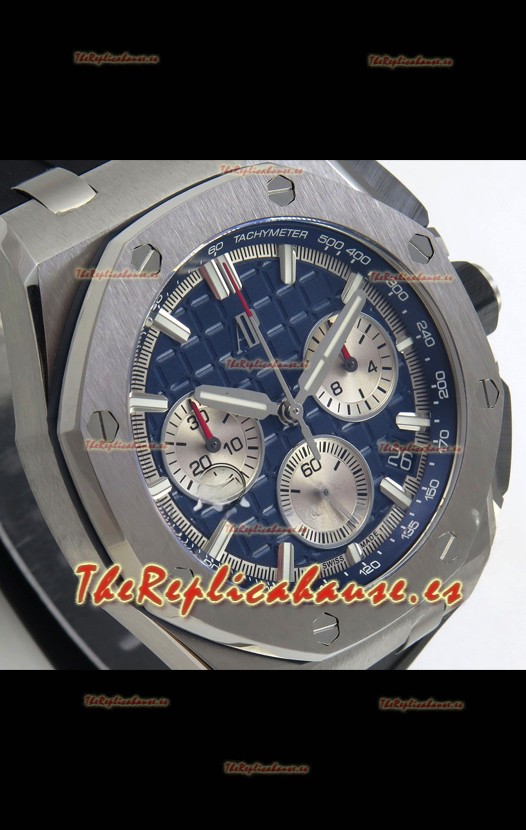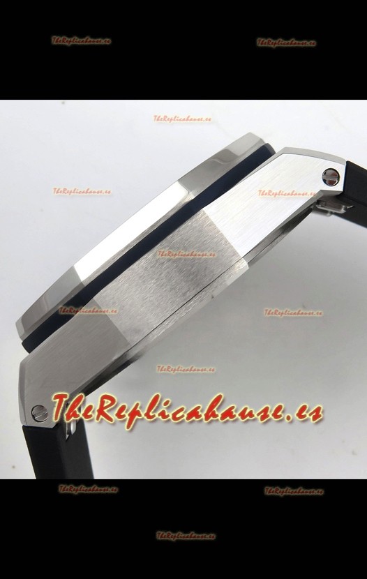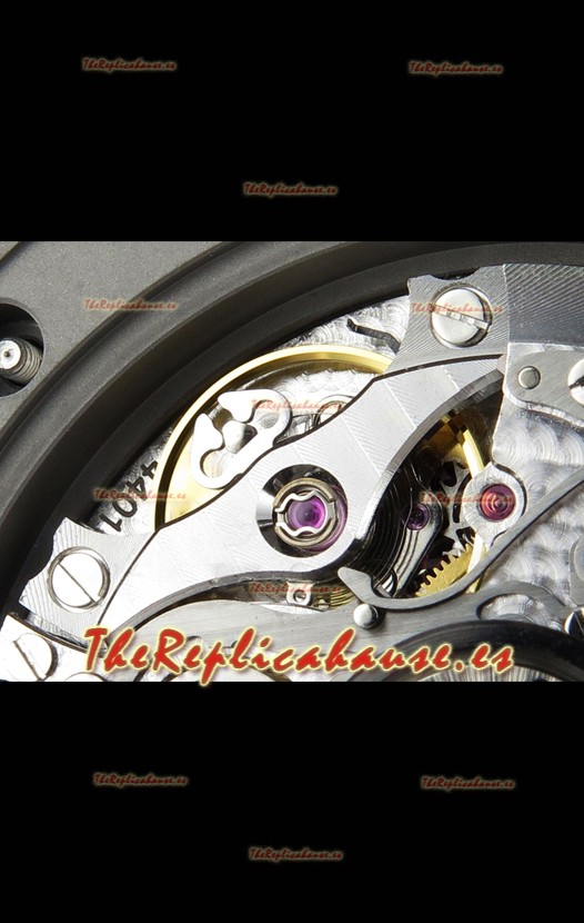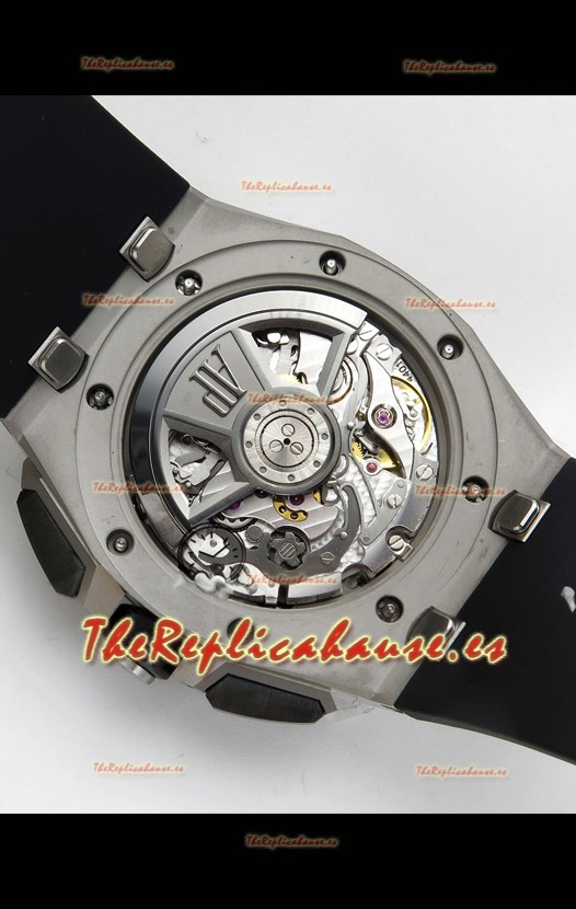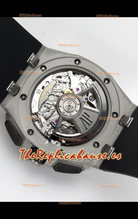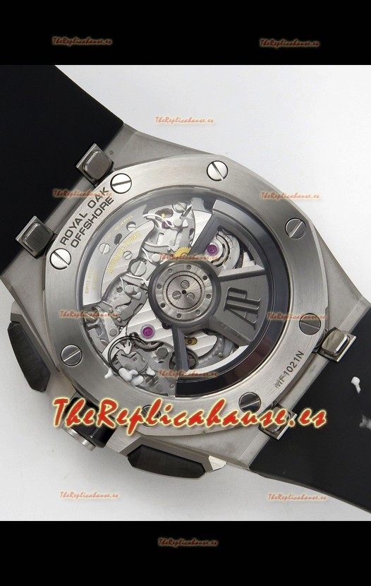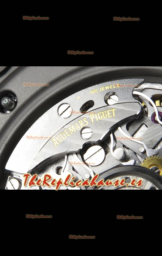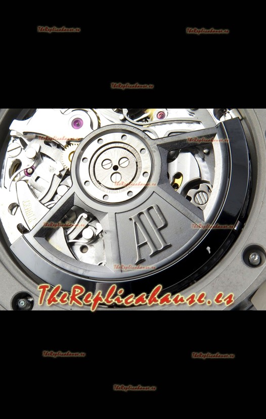 Disposición de la Maquinaria idéntica a la del Movimiento Audemars Piguet 3126 Calibre utilizado en los Relojes Auténticos Audemars Piguet Offshore, fabricado con la arquitectura del Genuino movimiento Suizo 7753, con cronómetro funcional como el original