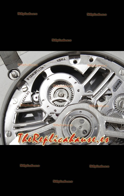 Genuino Movimiento Tourbillon Suizo de Cuerda Manual. Alineación de la Maquinaria exactamente igual que la de los Originales.
