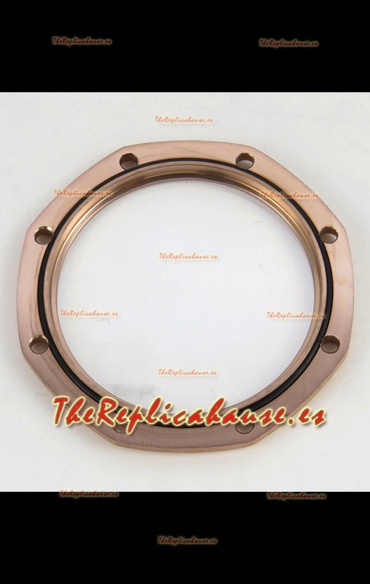 Caja Acero Inoxidable 904L chapada en Oro Rosado completada con Marcas/Grabados como los originales.