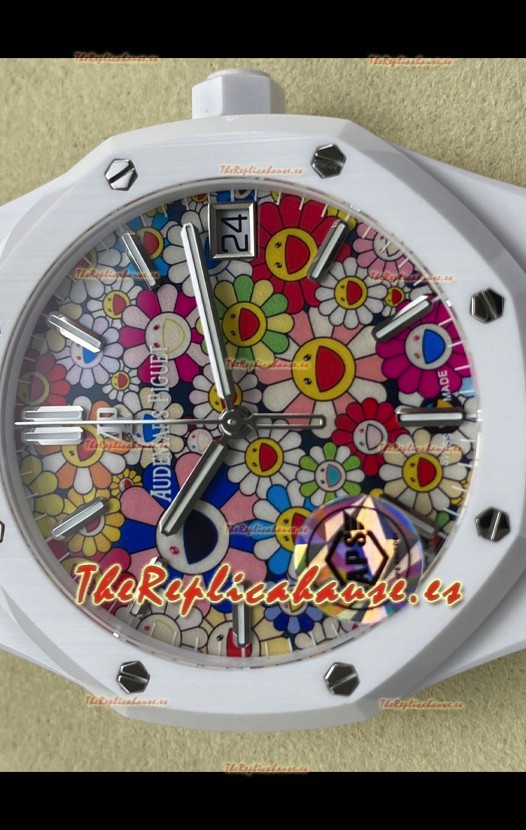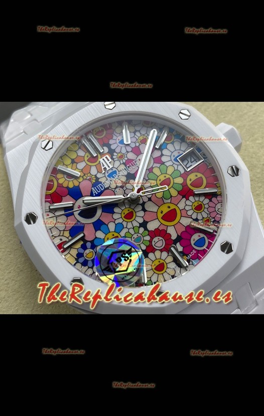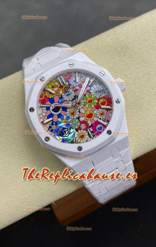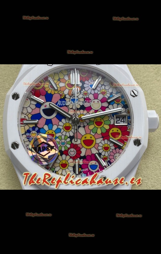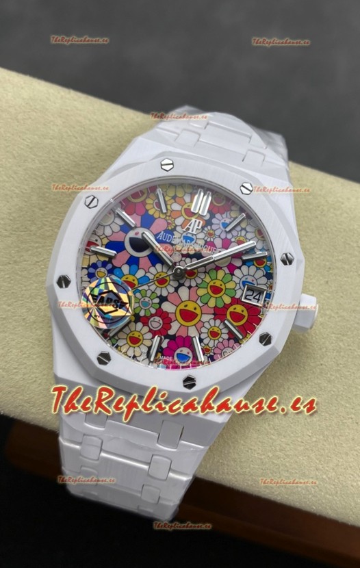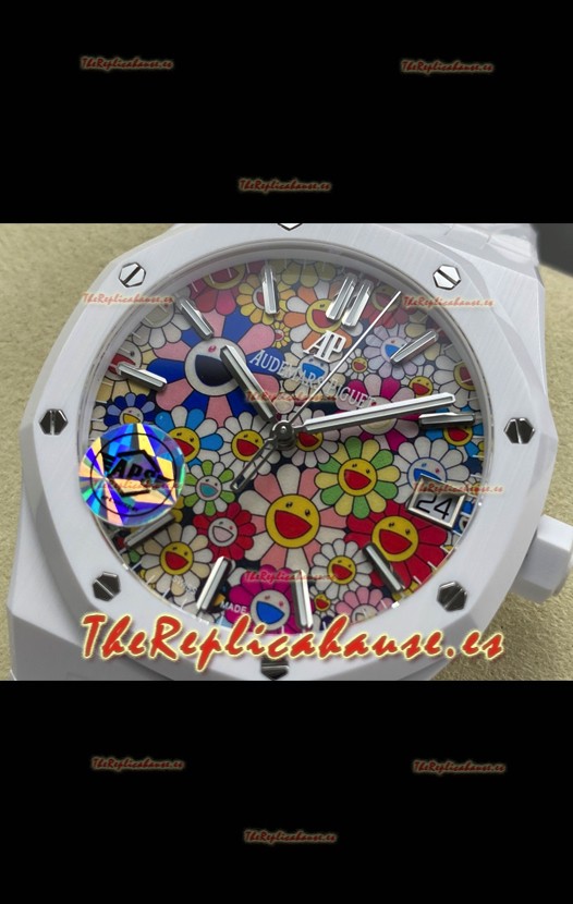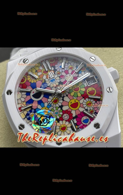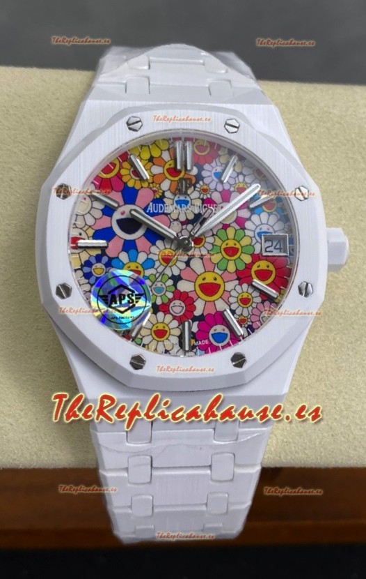 Reloj Audemars Piguet Super Clone Royal Oak de Cerámica Blanca con Dial en forma de Girasol