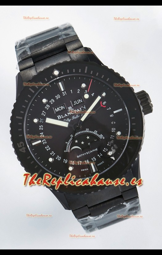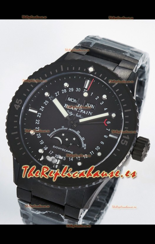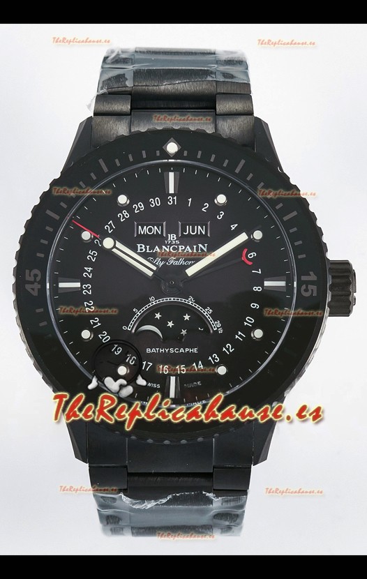 Reloj Blancpain Bathyscaphe Superclone con Caja de Cerámica y Dial Negro.