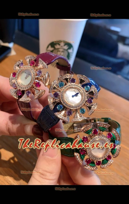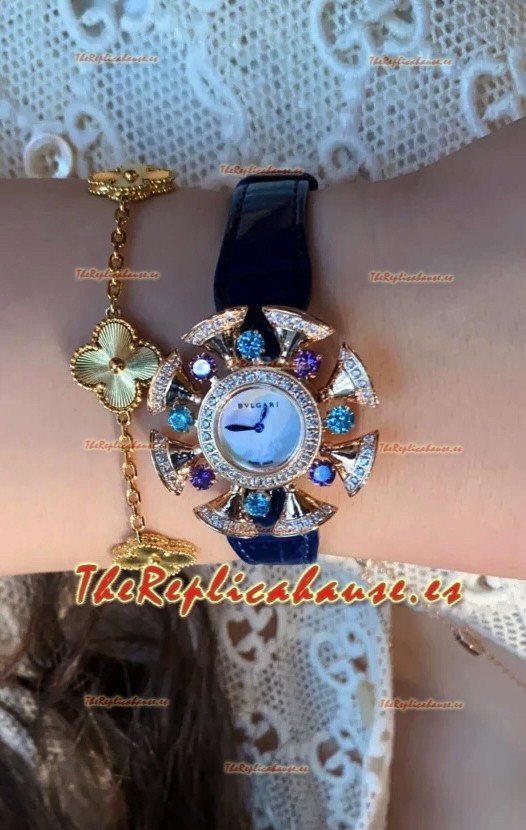 Reloj Bvlgari Edición Divas's Dream en Caja Oro Rosado - Bisel Pavimentado en Diamantes Réplica Suiza