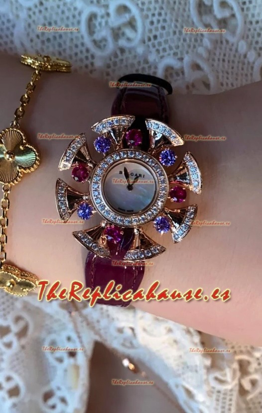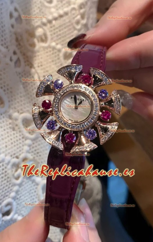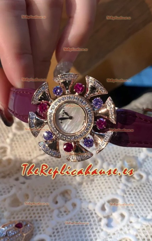 Reloj Bvlgari Edición Divas's Dream en Caja Oro Rosado - Bisel Pavimentado en Diamantes Réplica Suiza