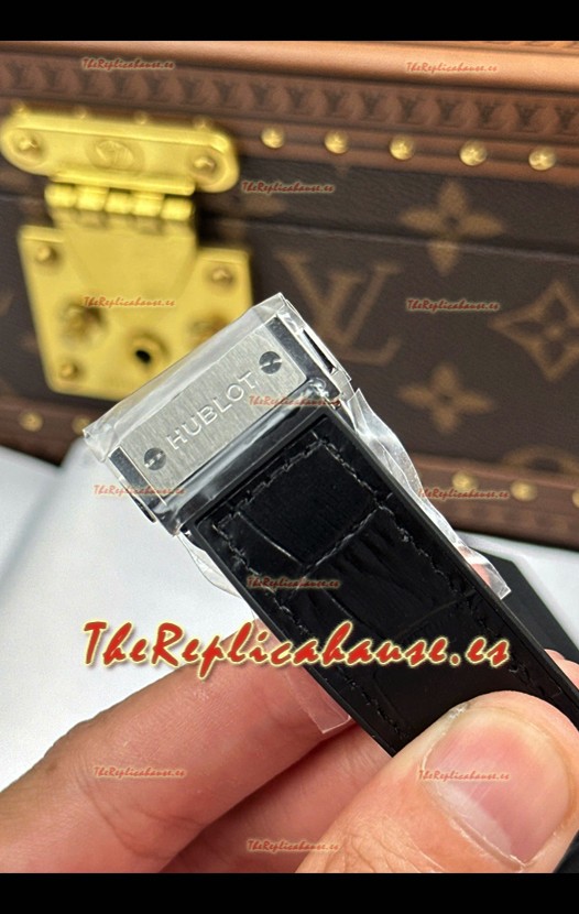 Genuina Correa Híbrida de Cocodrilo/Goma con Cierre Desplegable de Acero Inoxidable, con Marcas y Grabados Hublot.