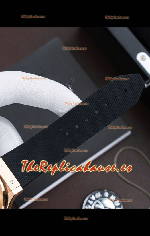 Genuine Correa de Goma con Cierre Desplegable de Oro Rosado completado con Marcas y Grabados Hublot.