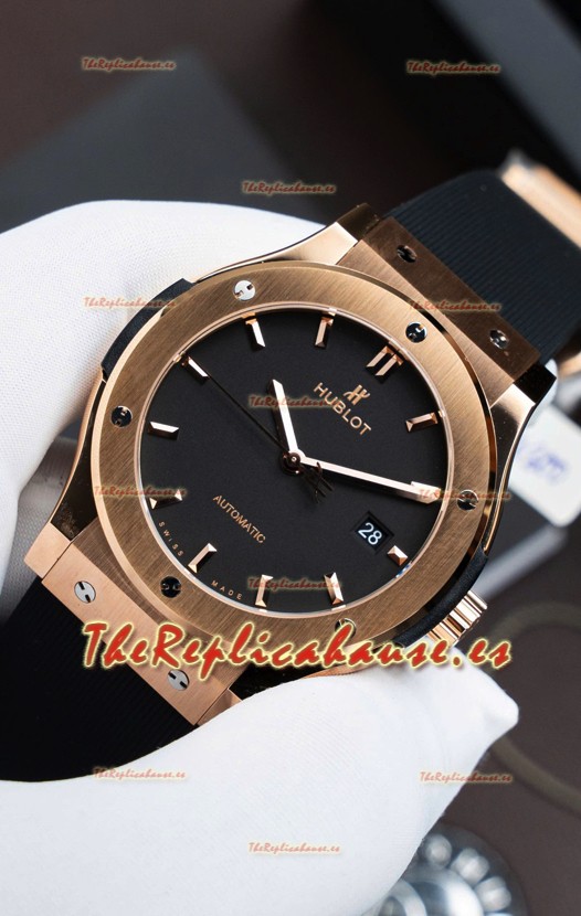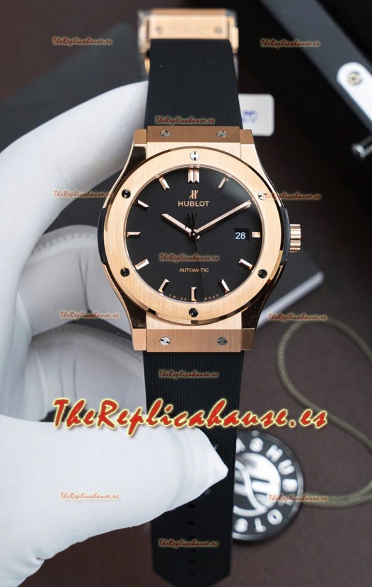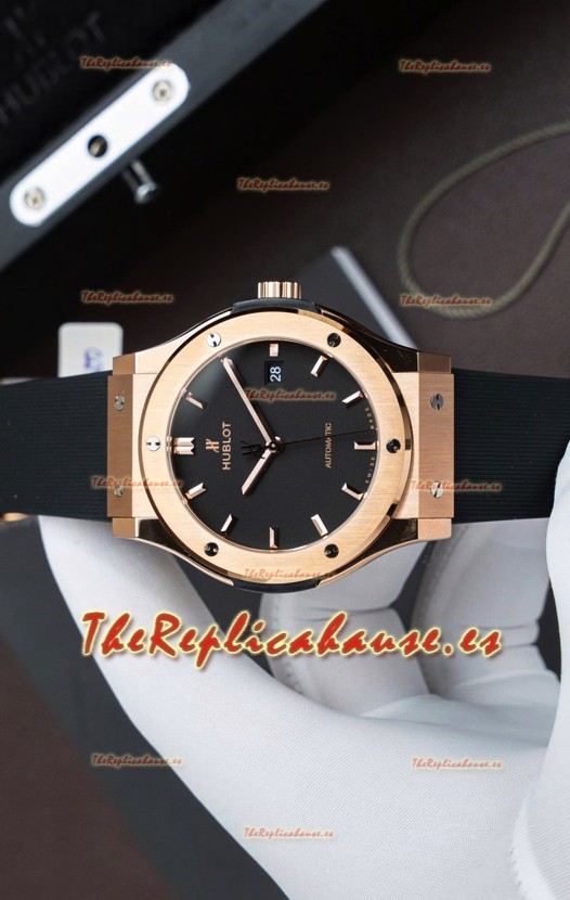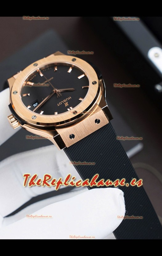 Reloj Hublot Super Clone Classic Fusion Titanio Dial Oro Rosado Negro 42MM