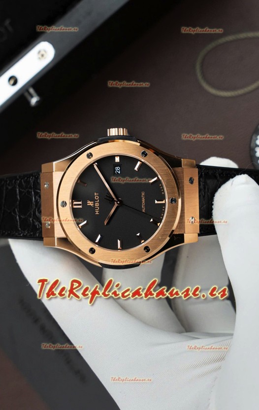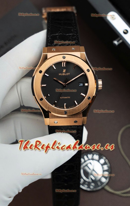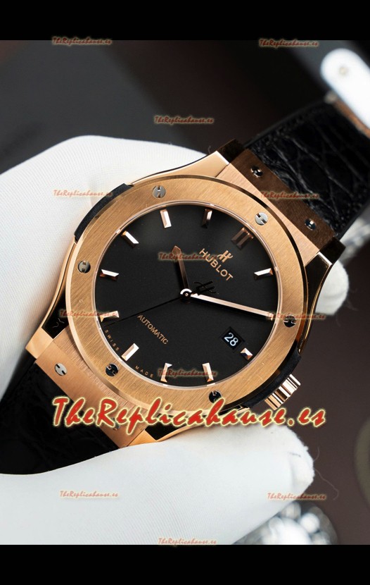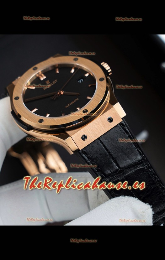 Reloj Hublot Super Clone Classic Fusion Titanio Dial Oro Rosado Negro 42MM
