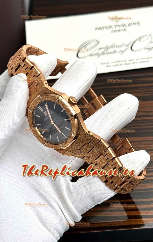 Caja Acero 904L chapada en Oro Rosado completada con Marcas y Grabados AP.