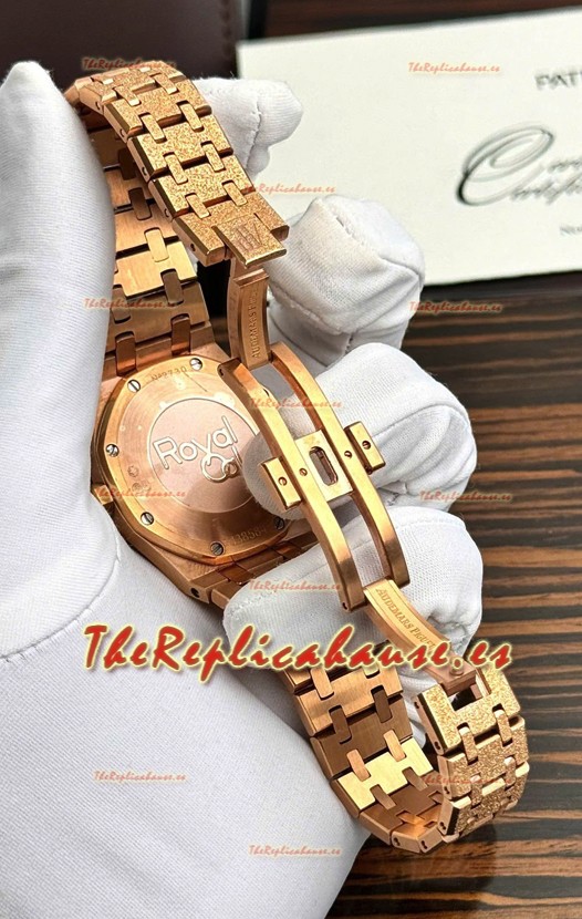 Correa Acero Inoxidable 904L chapada en Oro Rosado completada con Marcas y Grabados AP como los originales y cierre desplegable AP