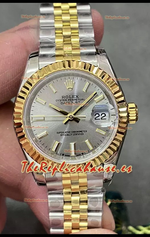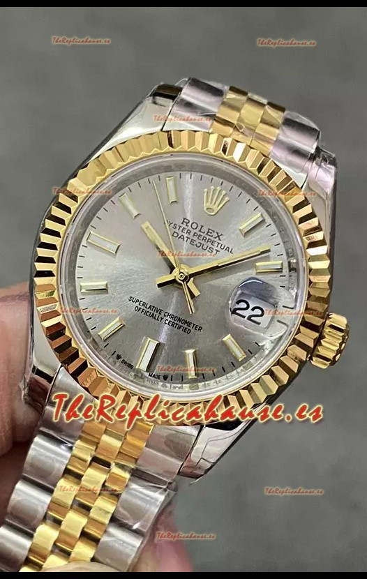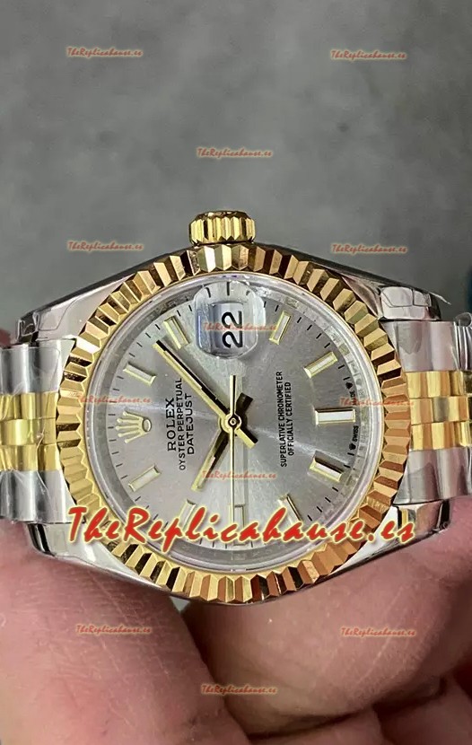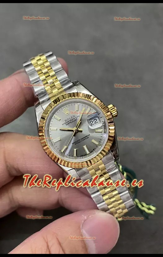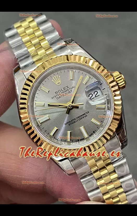 Reloj Rolex Datejust Super Clone Dial Gris Dos Tonos Oro Rosado 28MM