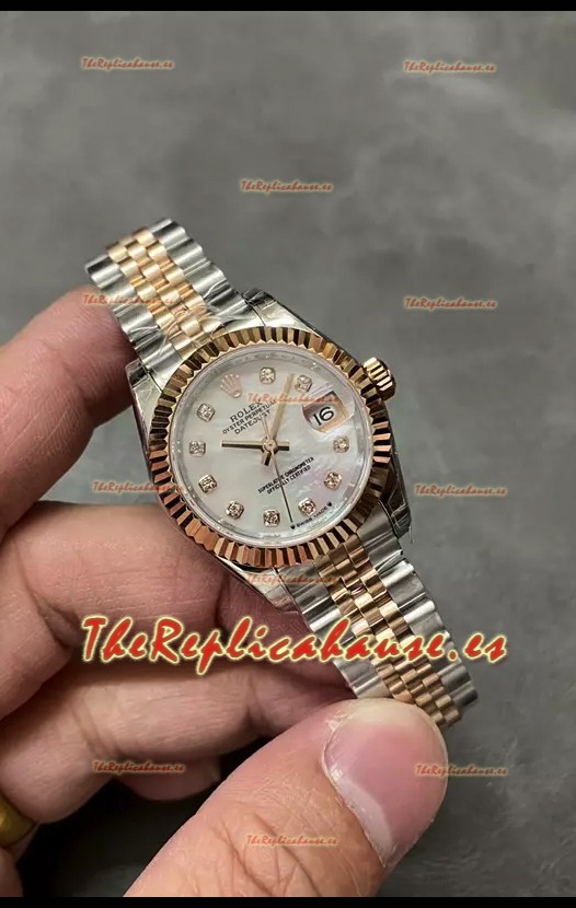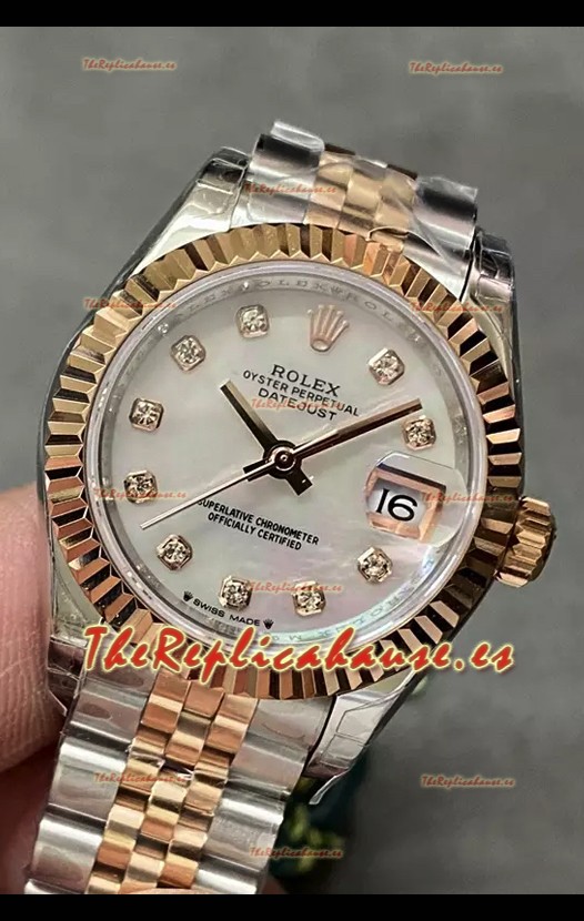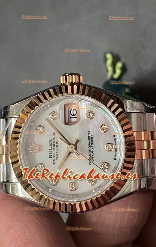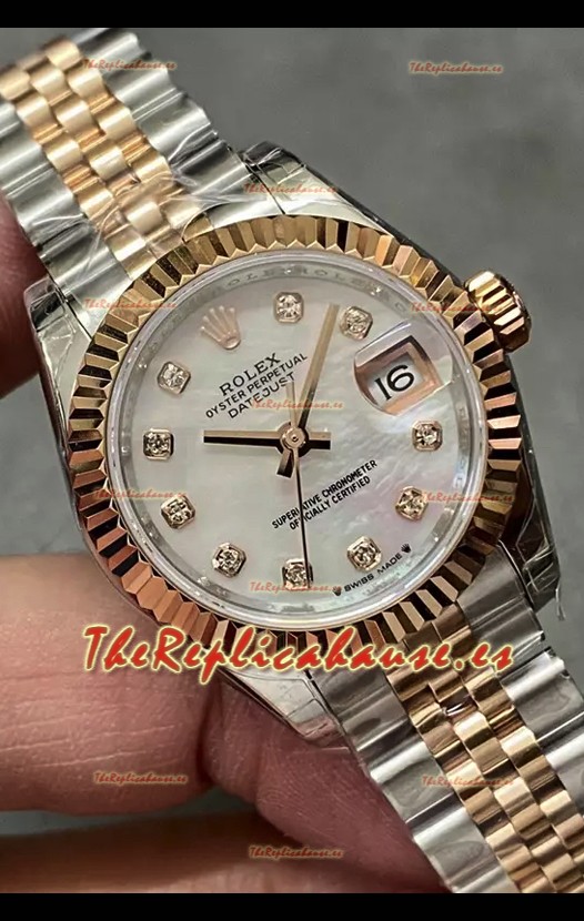 Reloj Rolex Datejust Super Clone Dial Madre Perla Dos Tonos Oro Rosado 28MM