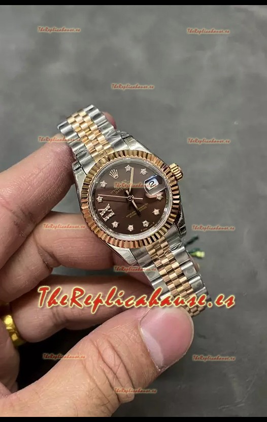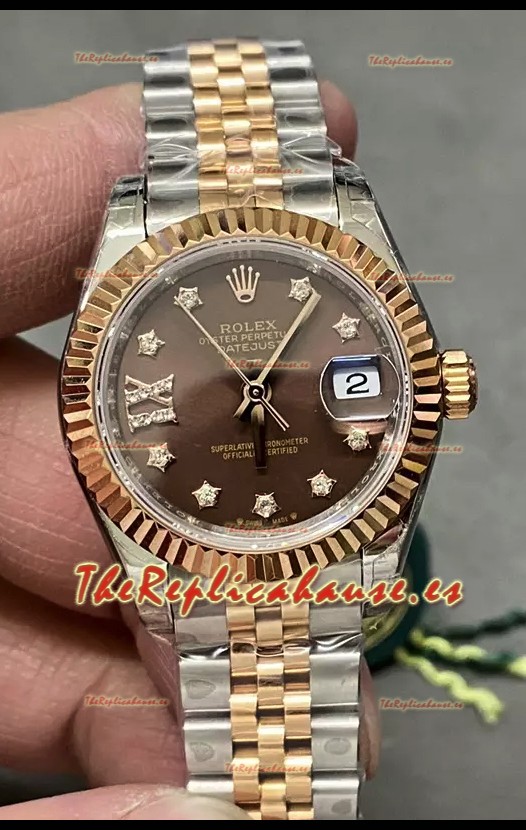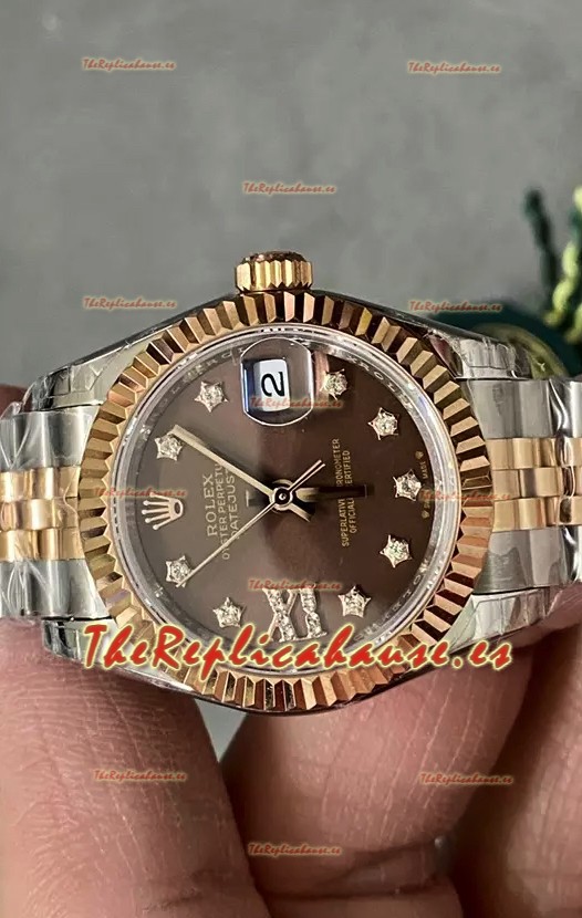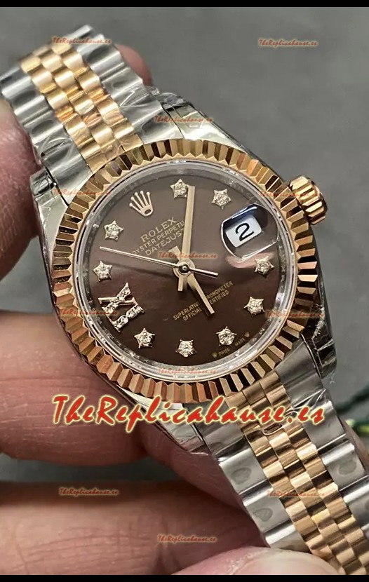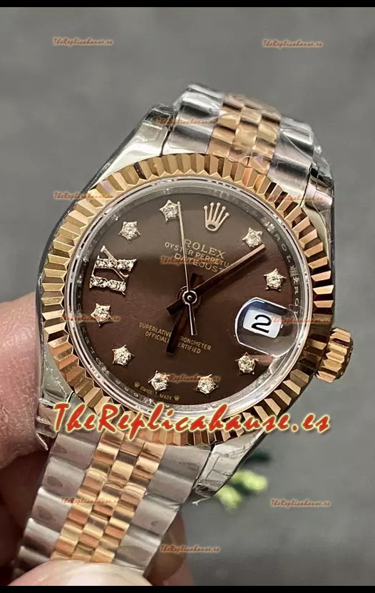 Reloj Rolex Datejust Super Clone Dial Marrón Dos Tonos Oro Rosado 28MM