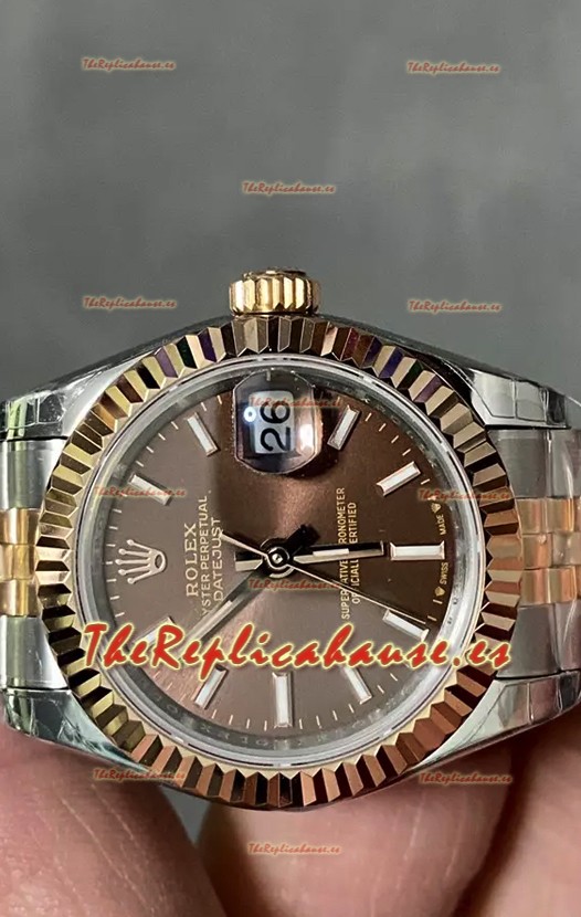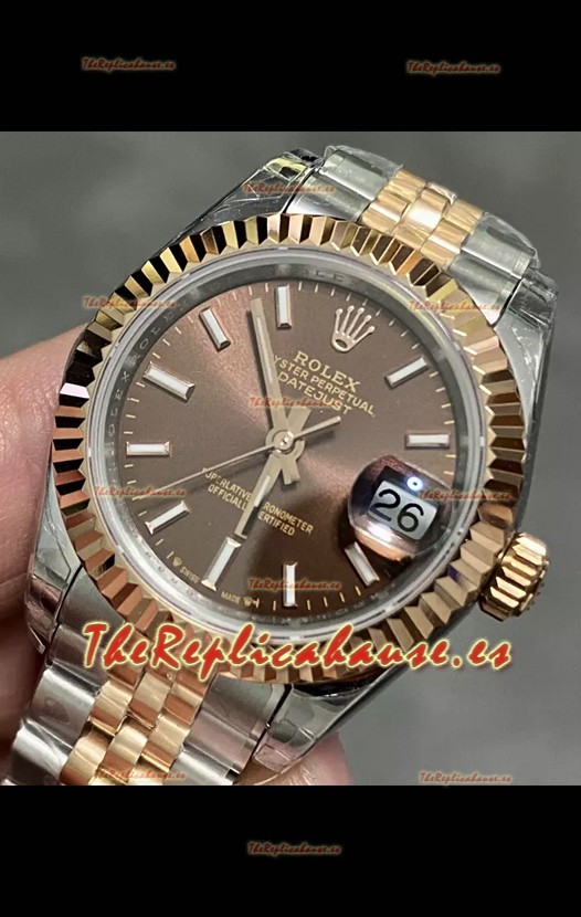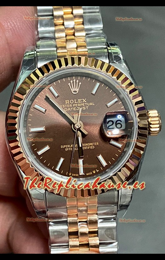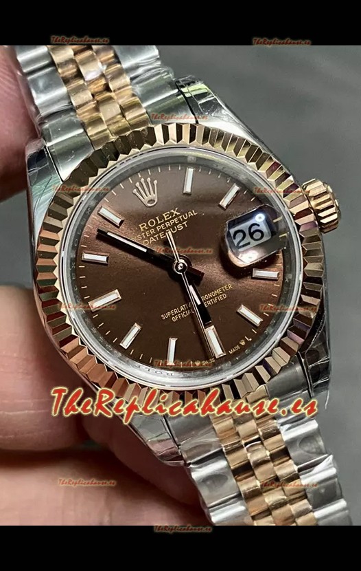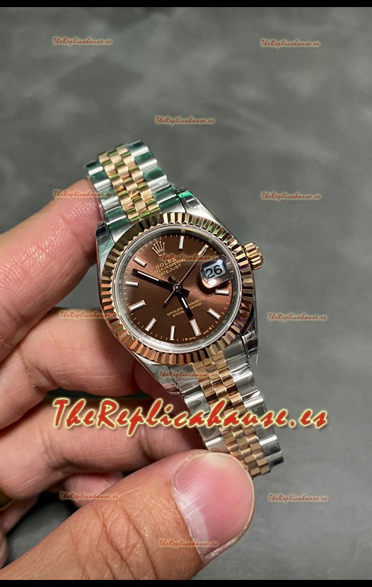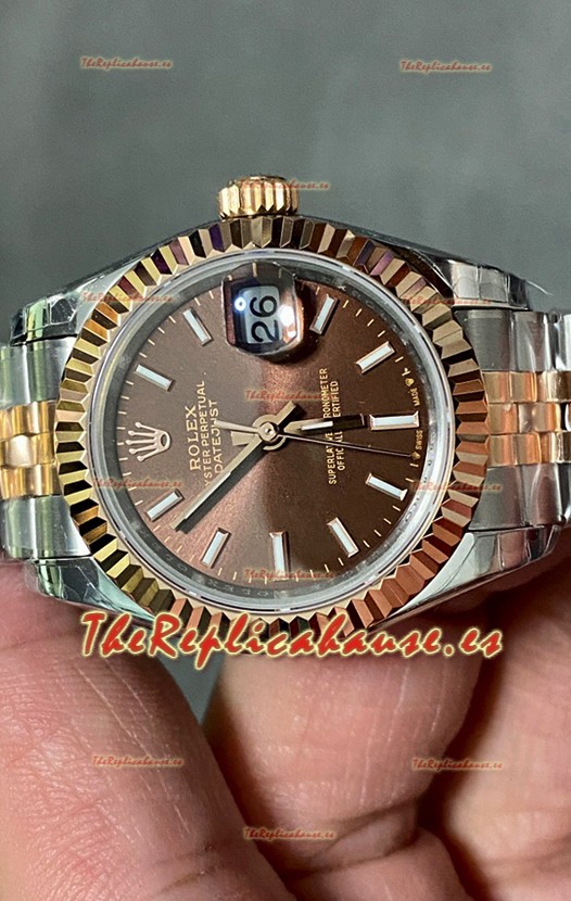 Rolex Datejust Super Clone Dial Marrón Rose Gold Steel Watch 28MM