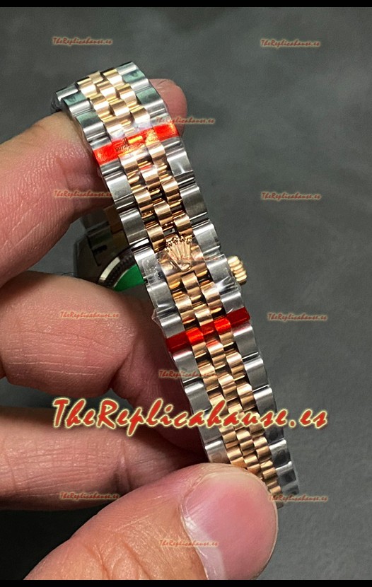 Correa Acero Inoxidable 904L chapada en Oro Rosado 18K Dos Tonos con Cierre Plegable. Los eslabones de los extremos coinciden al ras con la Caja. - Una versión Muy Mejorada de la Correa Datejust