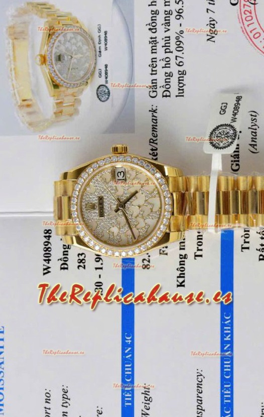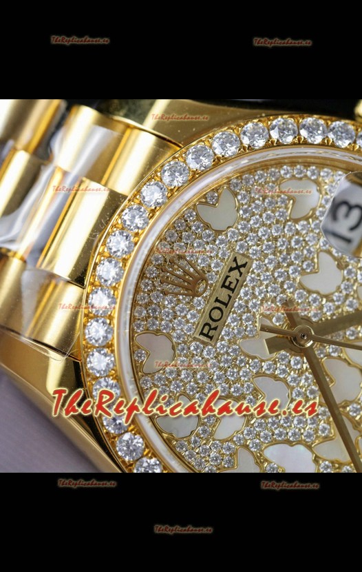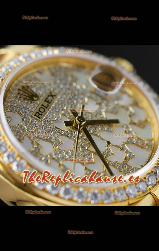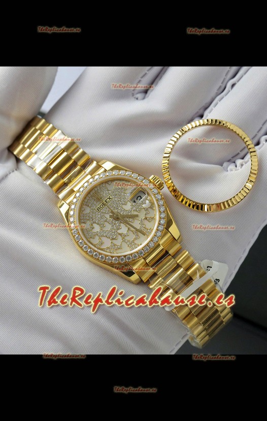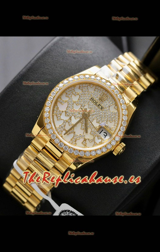 Reloj Rolex Datejust Super Clone Moissanitas Dial Mariposa 31MM Oro Amarillo