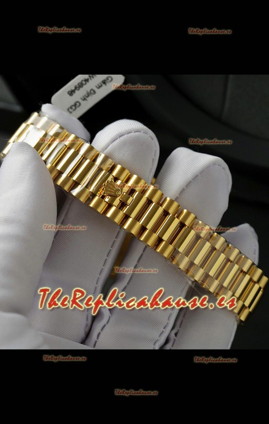 Correa de Acero Inoxidable 904L chapada en Oro Amarillo 18K de Dos Tonos con Nuevo Cierre Hebilla Desplegable estilo Rolesor, eslabones de los extremos coinciden al ras con la Caja. - Una versión Muy Mejorada de la Correa Datejust
