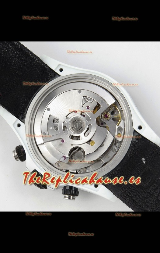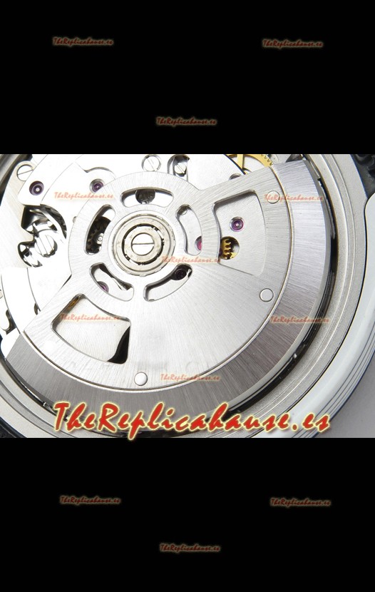 Genuino Movimiento Cal.4130 construido desde cero sin modificaciones, Platos y Rotores chapados en Platino como en el Original. El mismo Movimiento que encuentras en los Relojes Rolex Daytona