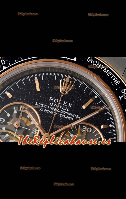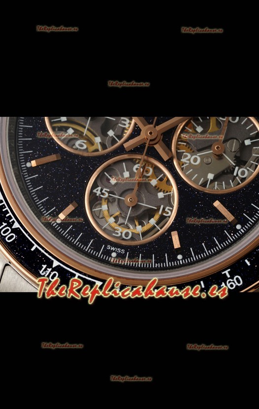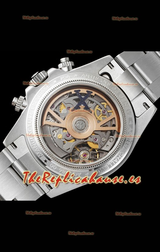 Genuino Movimiento Cal.4130 construido desde cero sin modificaciones, Platos y Rotores chapados en Platino como en el Original. El mismo Movimiento que encuentras en los Relojes Rolex Daytona