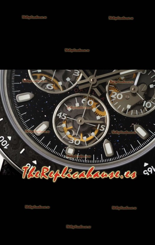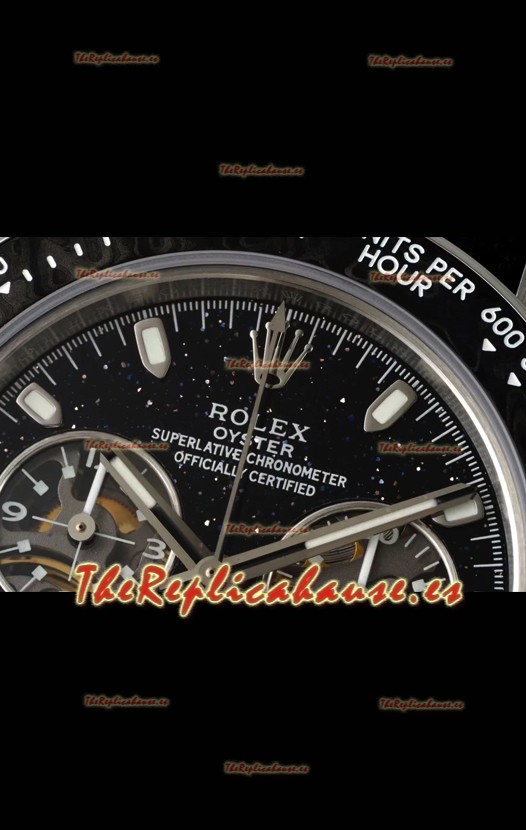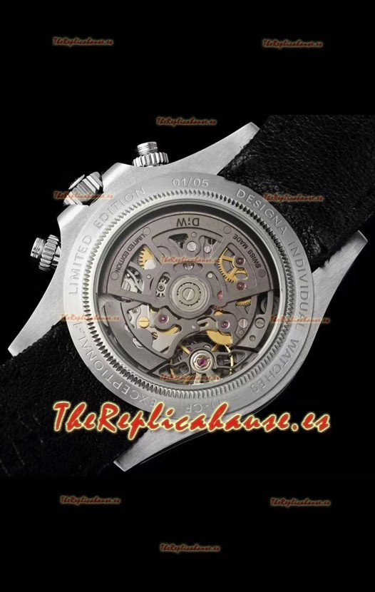Genuino Movimiento Cal.4130 construido desde cero sin modificaciones, Platos y Rotores chapados en Platino como en el Original. El mismo Movimiento que encuentras en los Relojes Rolex Daytona