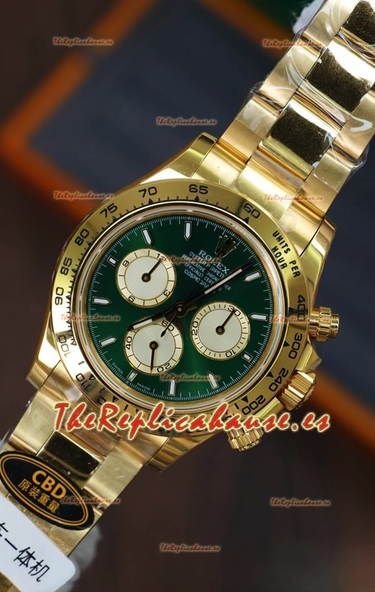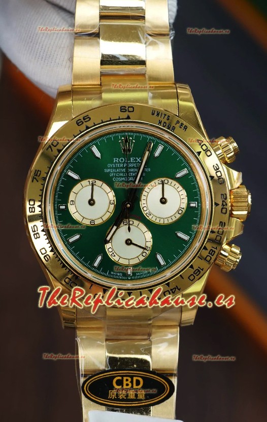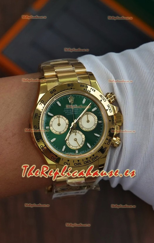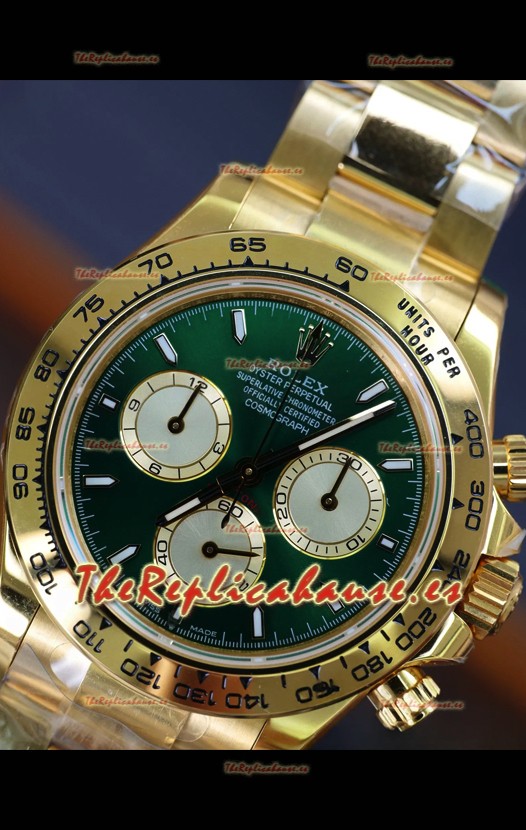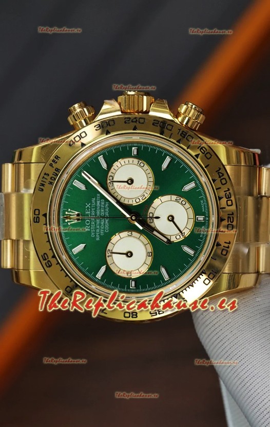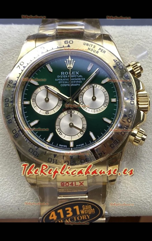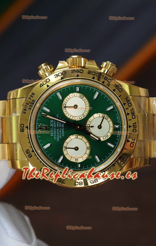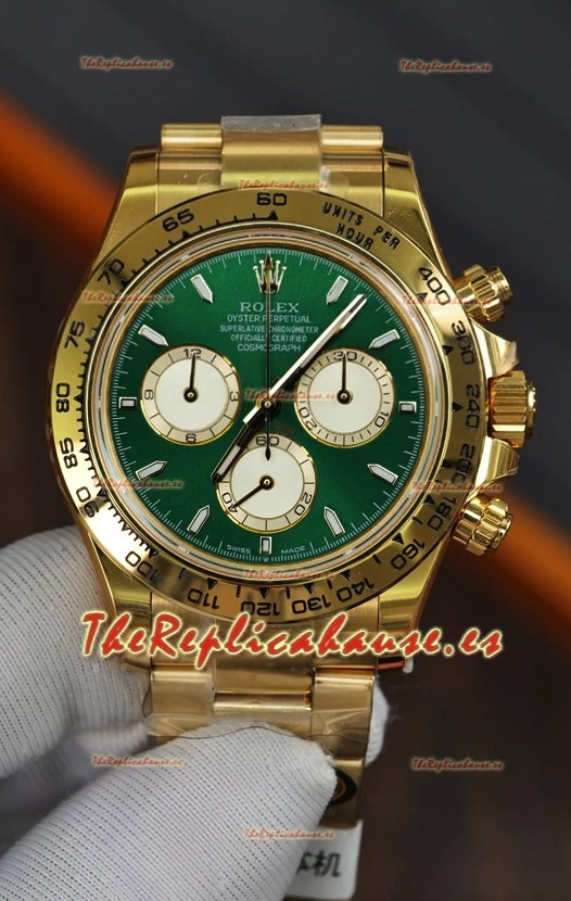 Reloj Rolex Daytona Super Clone M116505 Rose Dial Dorado Verde Movimiento Original Cal.4131 Acero 904L