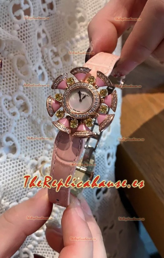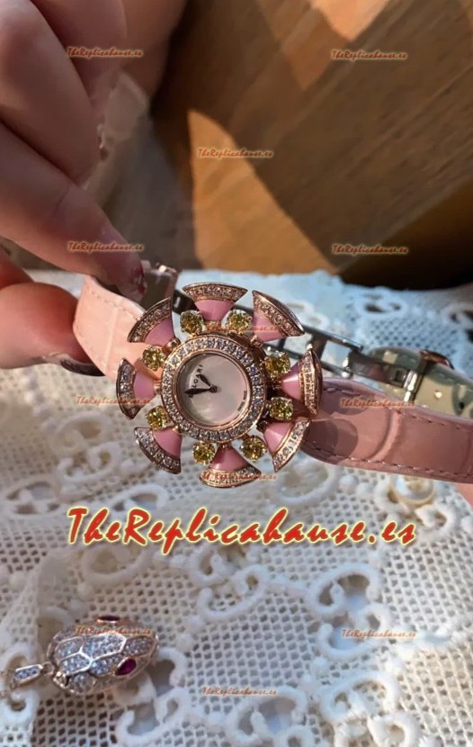 Reloj Bvlgari Edición Divas's Dream en Caja Oro Rosado - Bisel Pavimentado en Diamantes Réplica Suiza