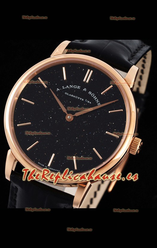 A.Lange & Sohne Saxonia Thin Reloj Réplica Suizo Caja en Oro Rosado Dial Negro Estrellado Estrellado