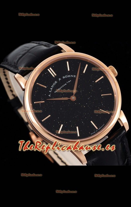 A.Lange & Sohne Saxonia Thin Reloj Réplica Suizo Caja en Oro Rosado Dial Negro Estrellado