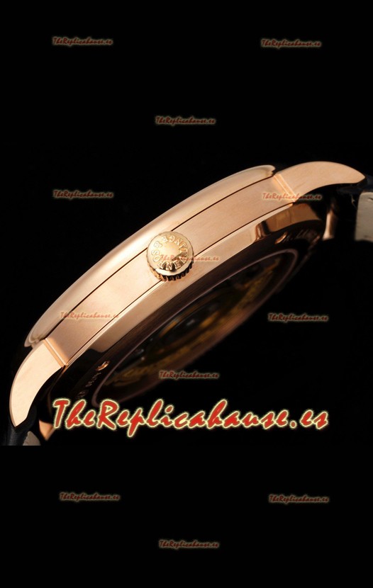 Caja de Acero Inoxidable Solido pulido 904 chapada en Oro Rosado 18K con Cubierta trasera de la Caja en Acero. Bisel Pulido.