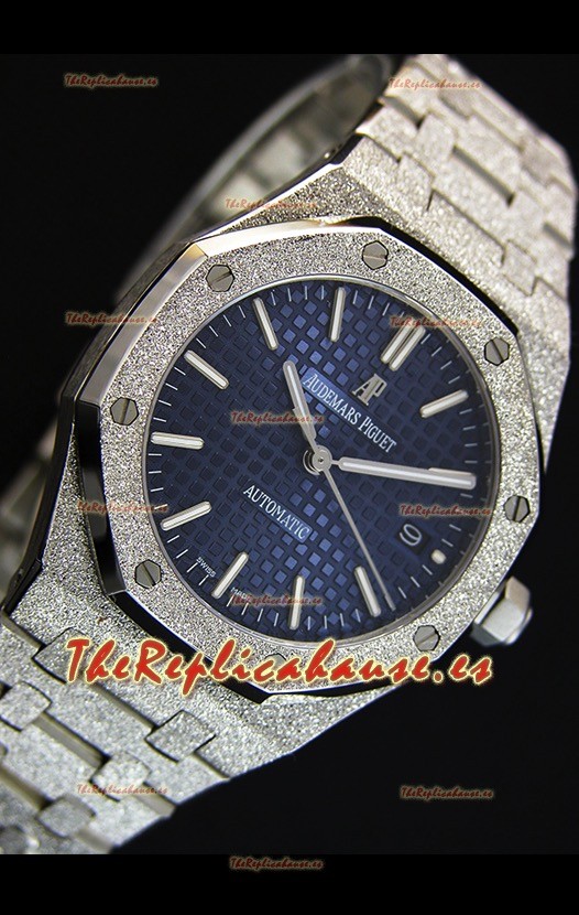 Audemars Piguet Royal Oak Frosted Self-Winding Reloj Réplica a espejo 1:1 con Dial en Oro Blanco color Azul