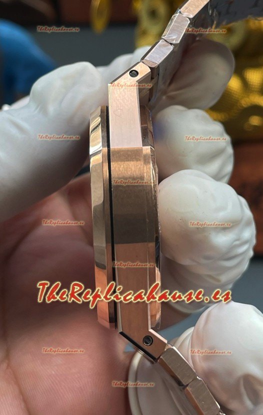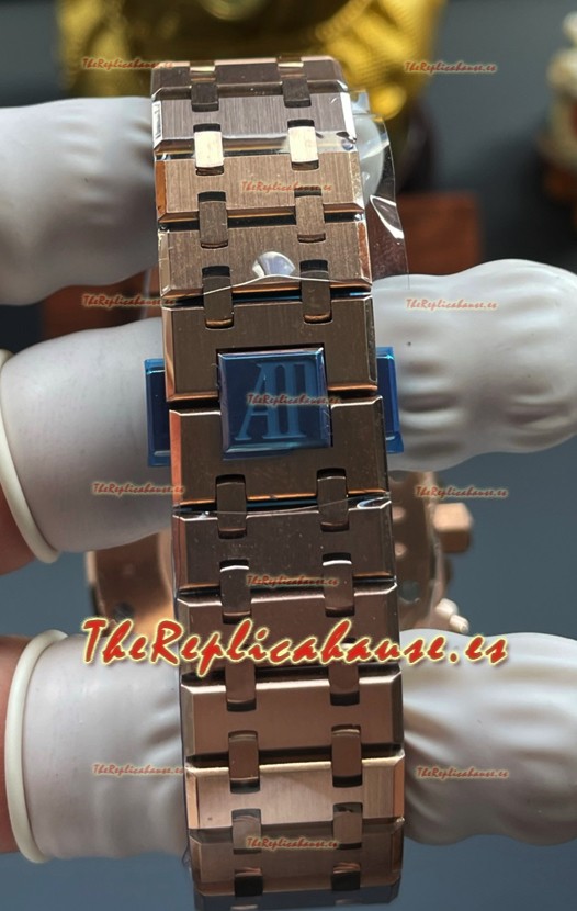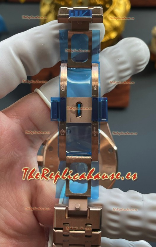 Correa Acero Inoxidable 904L chapada en Oro Rosado 18K completada con Marcas y Grabados AP como los originales y cierre desplegable AP