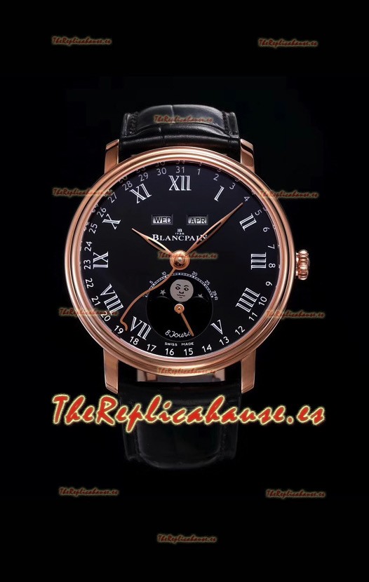 Blancpain "Villeret Quantième Complet" Reloj de Acero 904L en Oro Rosado Dial Negro