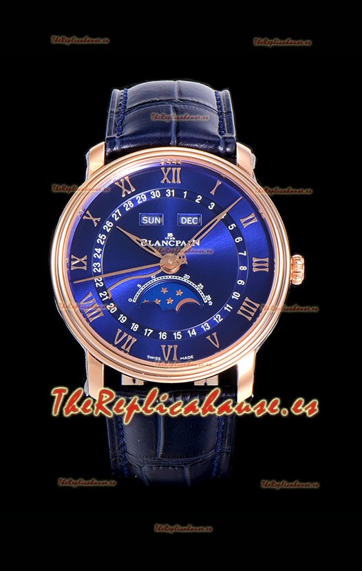 Blancpain "Villeret Quantième Complet" Reloj en Acero 904L Oro Rosado Dial Azul