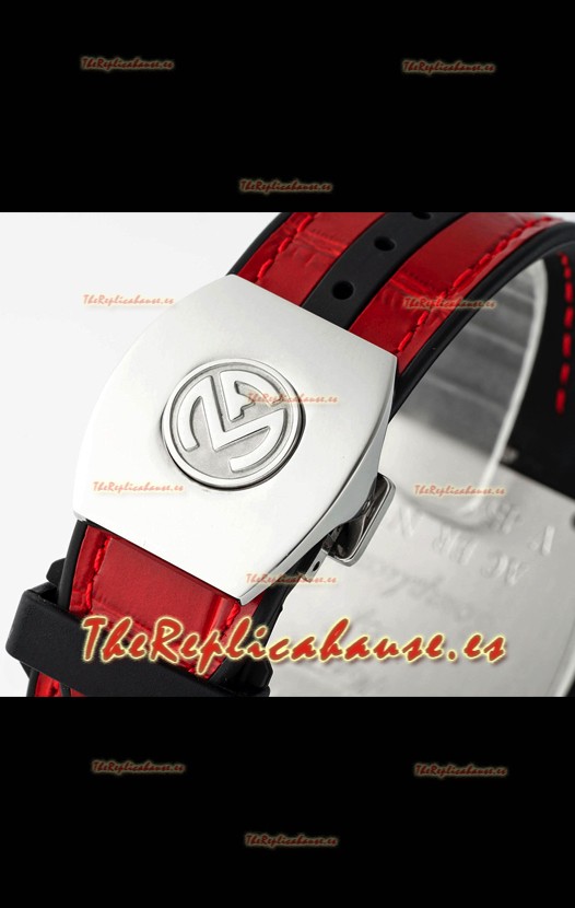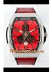 Dial Rojo con Indicador de Fecha a las 6 en punto.