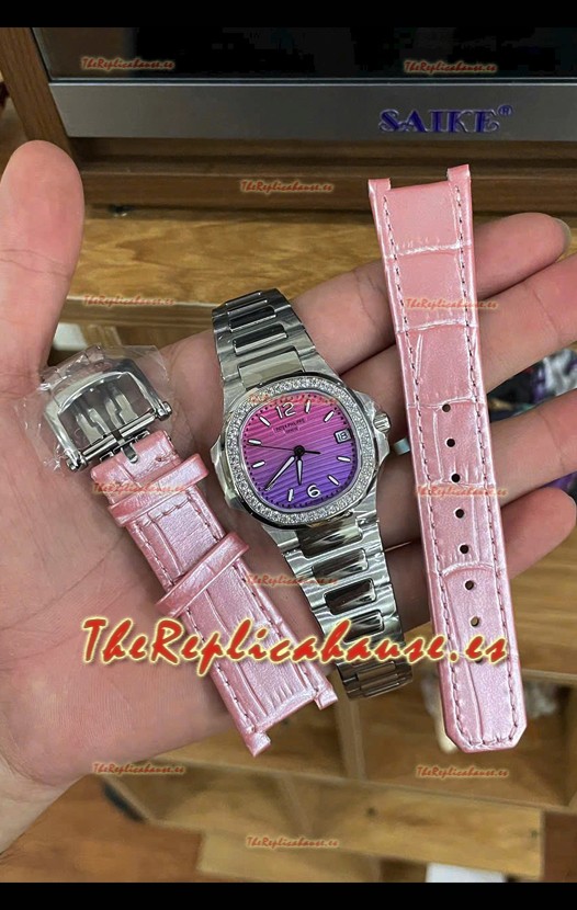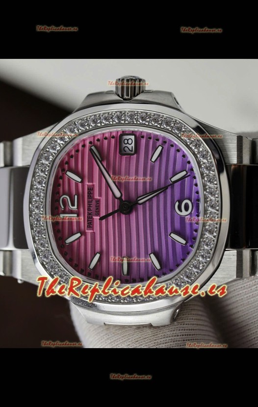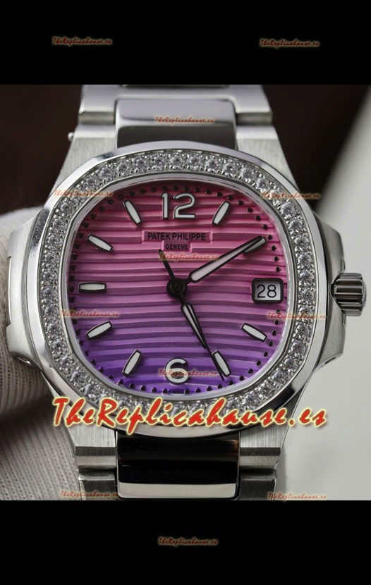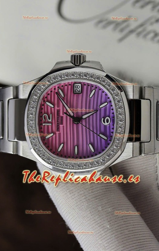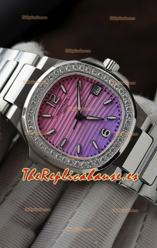 Patek Philippe 7010R Reloj Réplica Cuarto Suizo Gradient Purple y Dial Rosado
