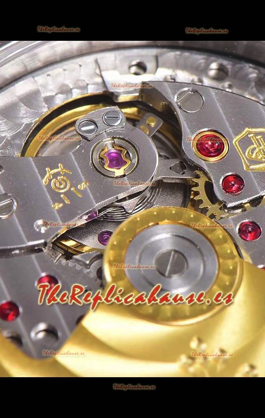 Genuino Movimiento Suizo 9015 ensamblado para Parecerse al Movimiento Auténtico Patek Philippe PP 240 Calibre. Rotor Actualizado, Puente y Grabados en el Movimiento con Rotor estampado Patek Philippe chapado en Oro Rosado