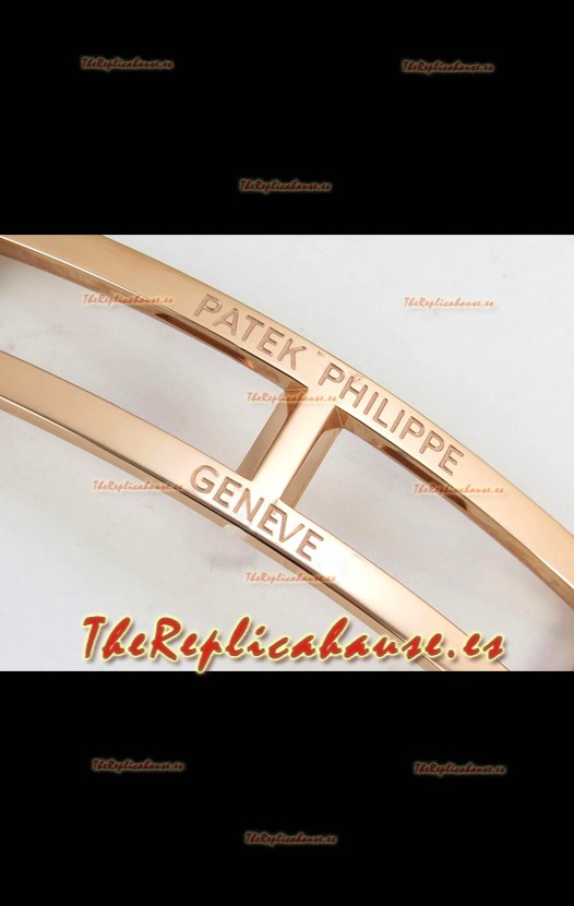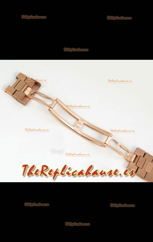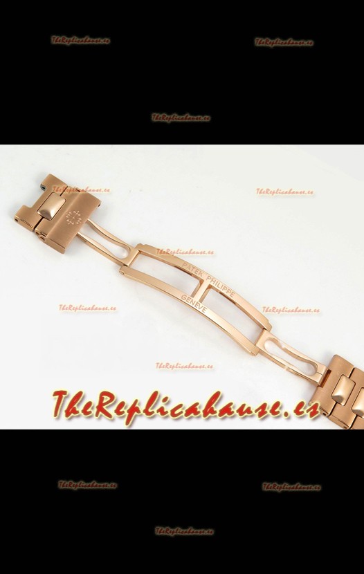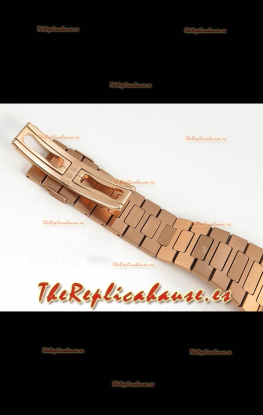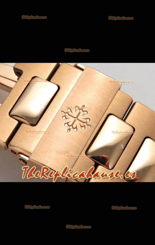 Correa Acero Inoxidable Solido 904L chapada en Oro Rosado 18K unida con Tornillos y Cierre Plegable Patek Philippe.