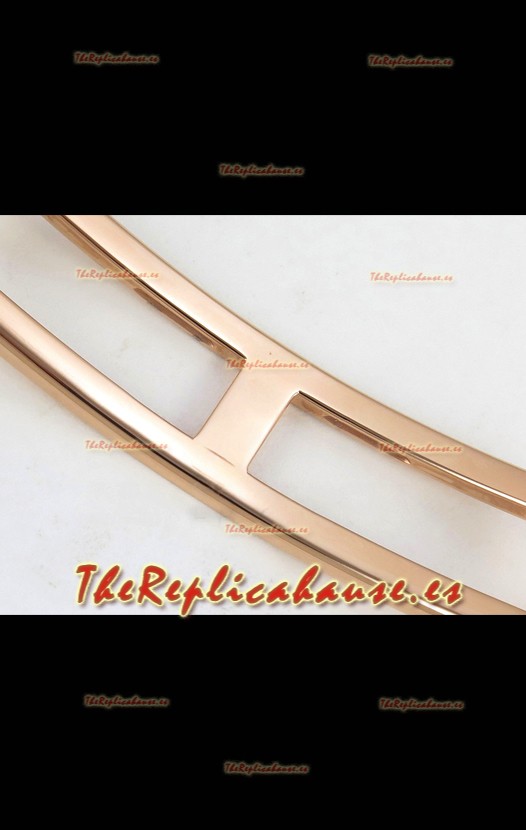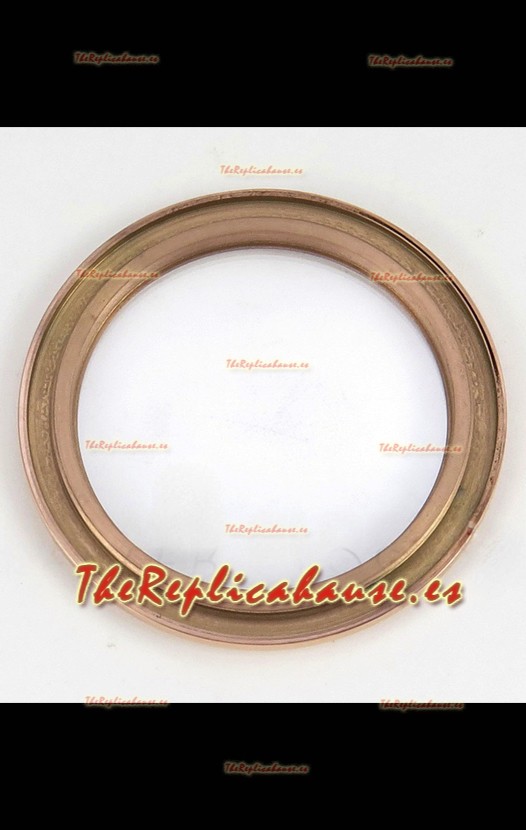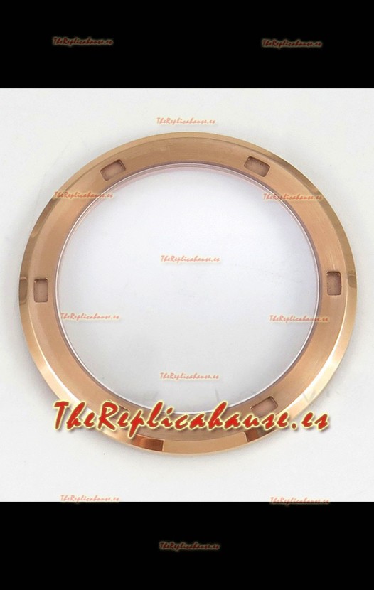 Caja Acero Inixldable Solido 904L chapada en Oro Rosado 18K con Trasera de la Caja Abierta en Acero. Bisel con Bordes Pulidos