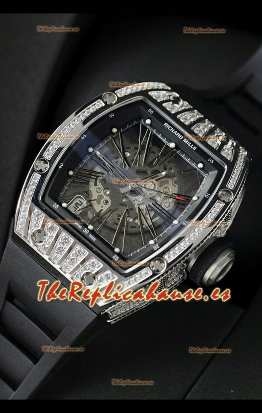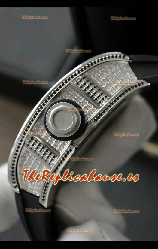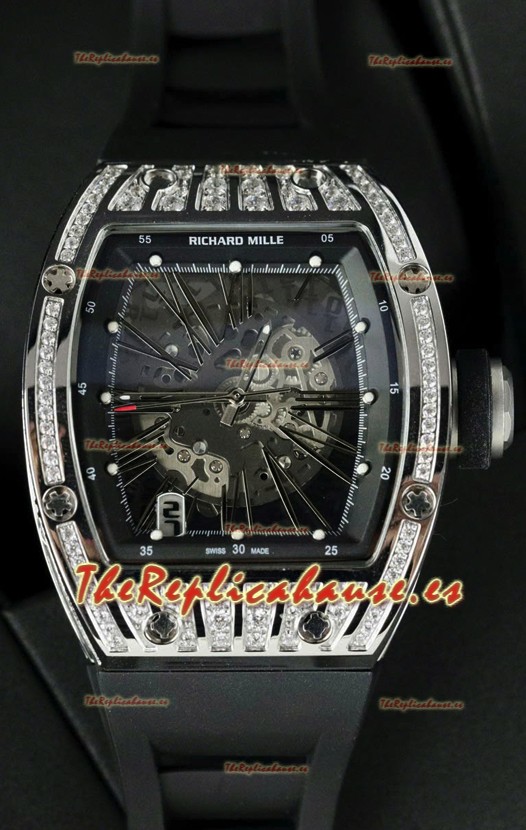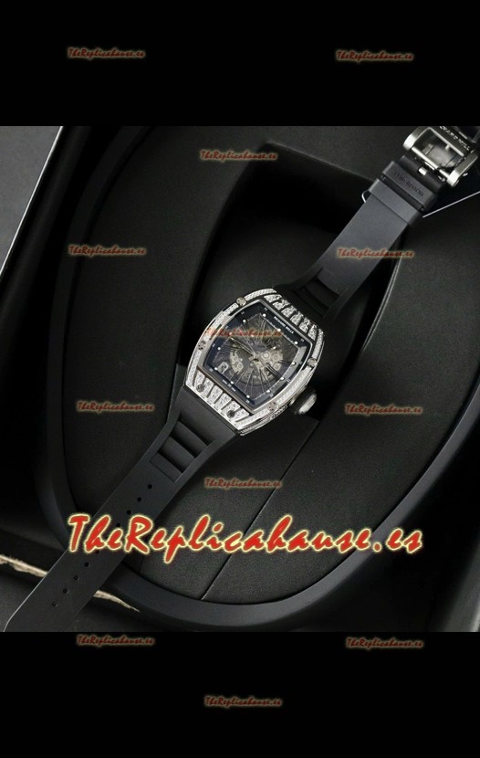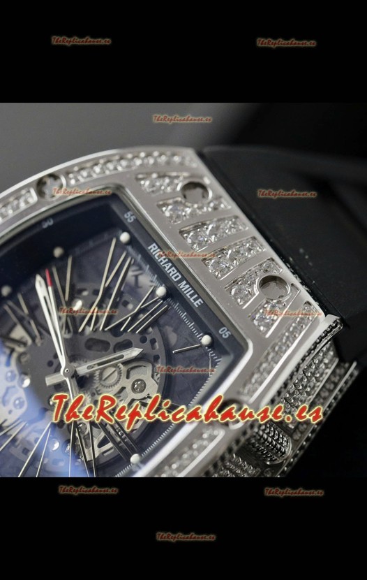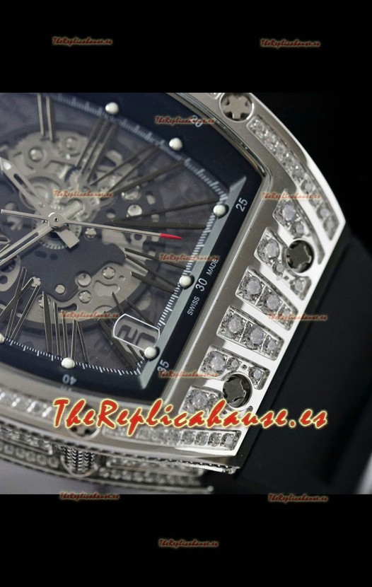 Dial Skeleton con Maquinaria alineada exactamente como los Originales. Diamantes incrustados en Bisel
